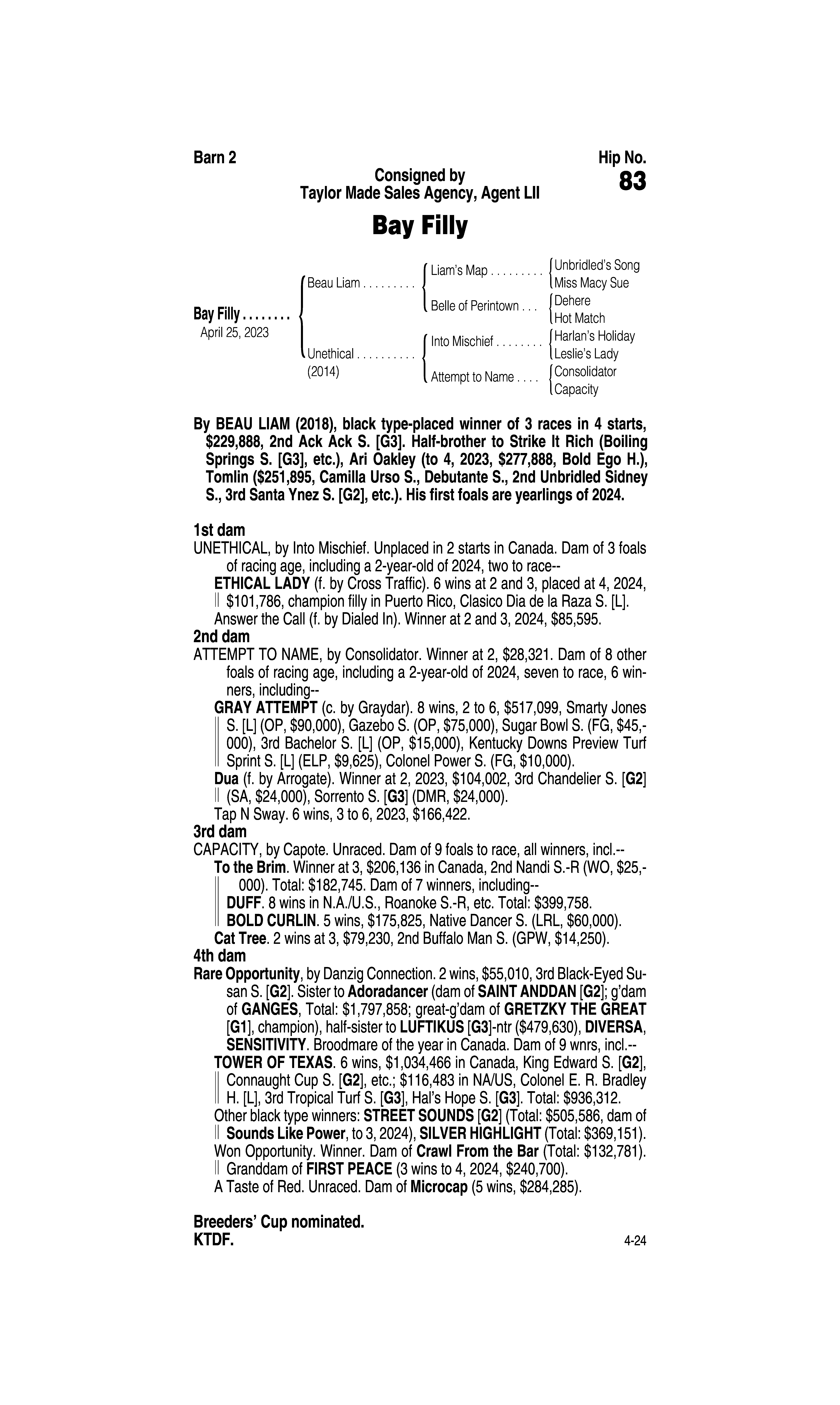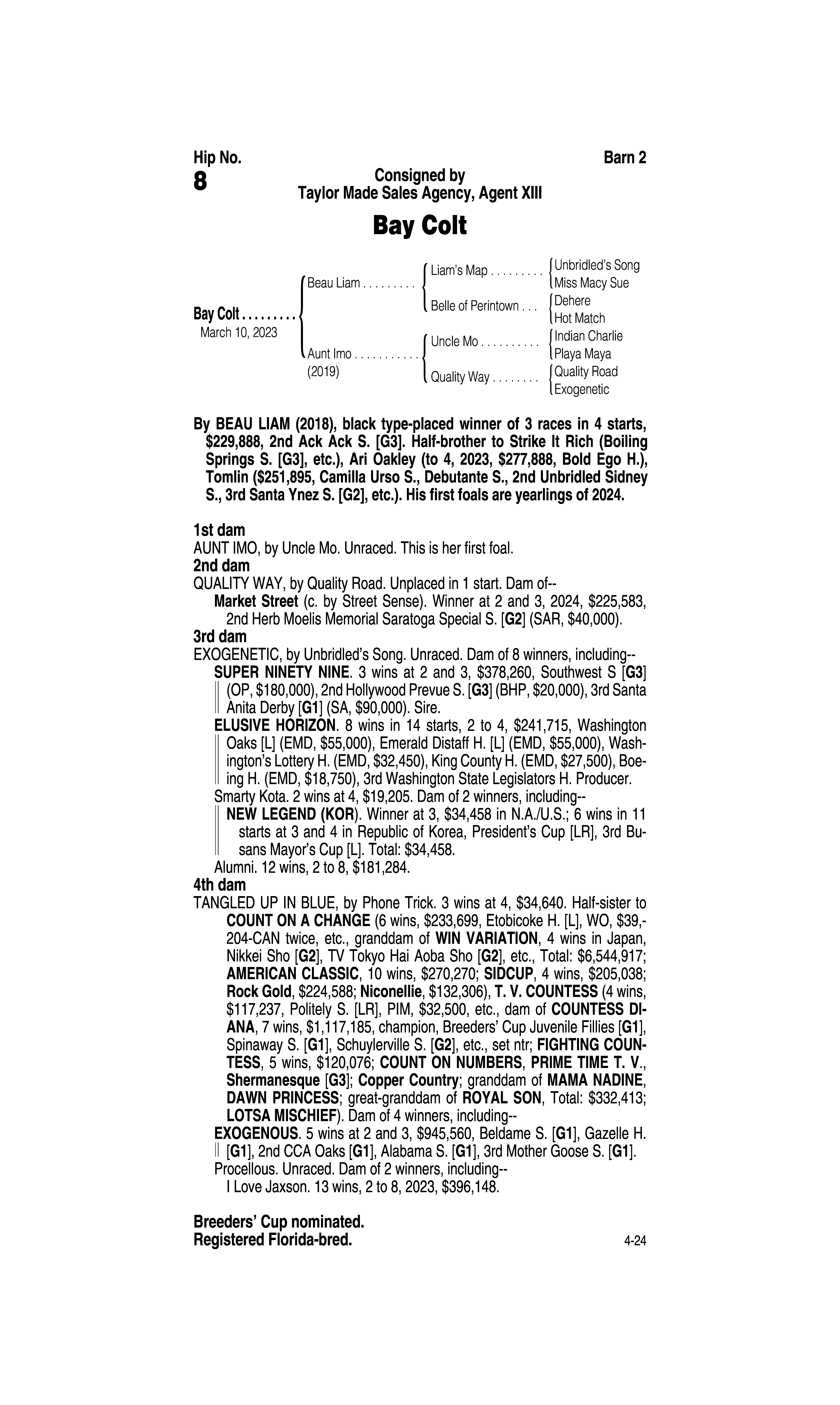 Sire: Beau Liam