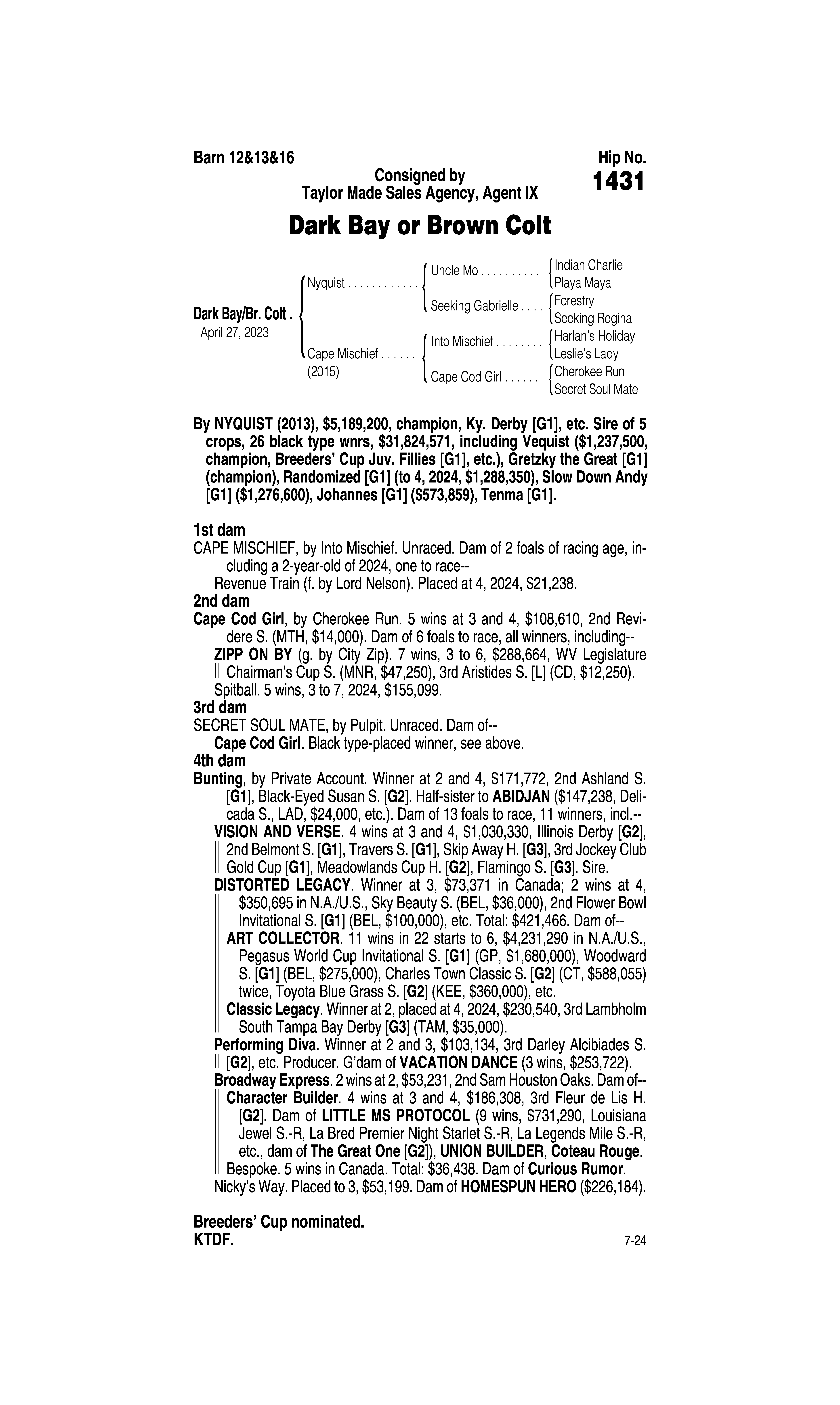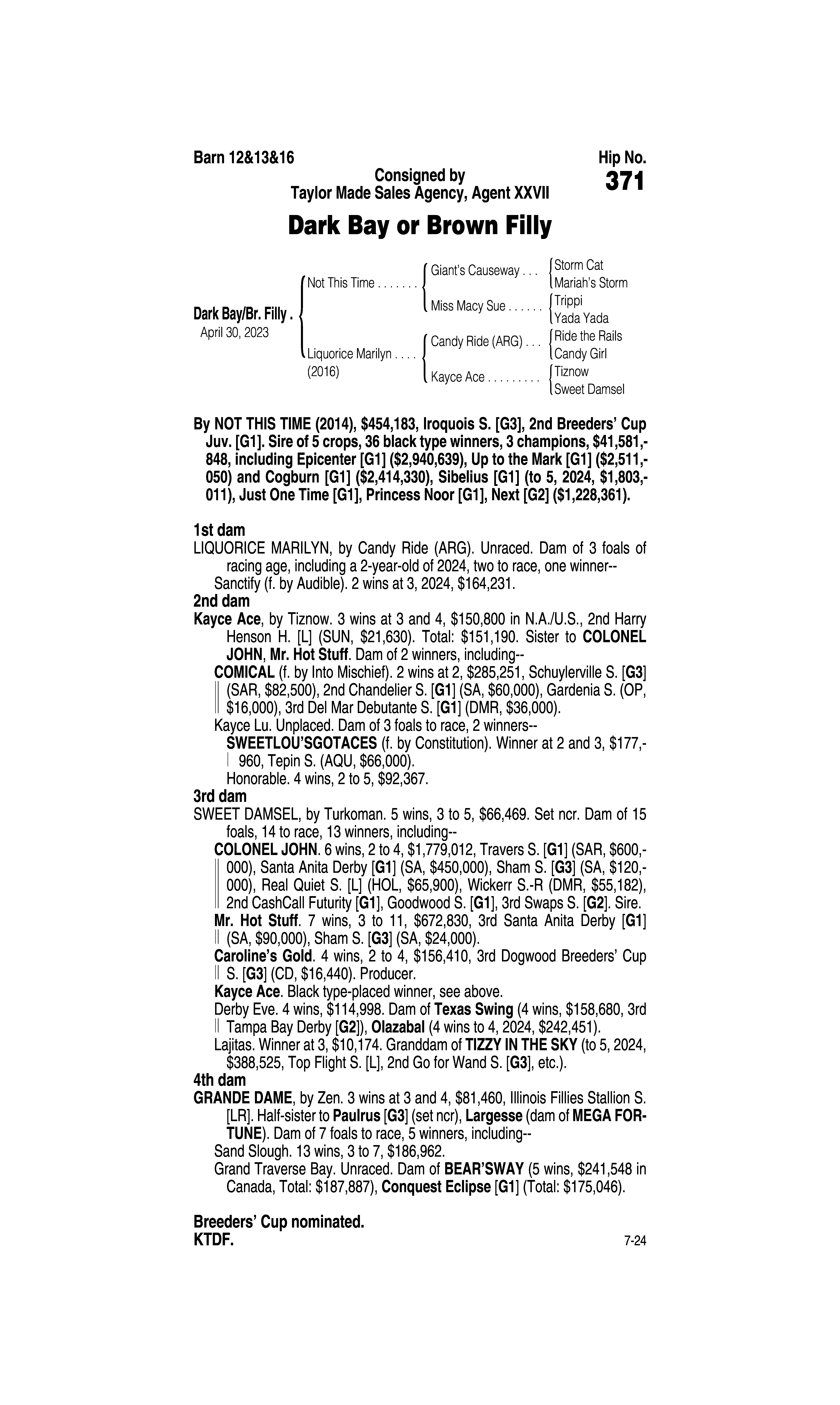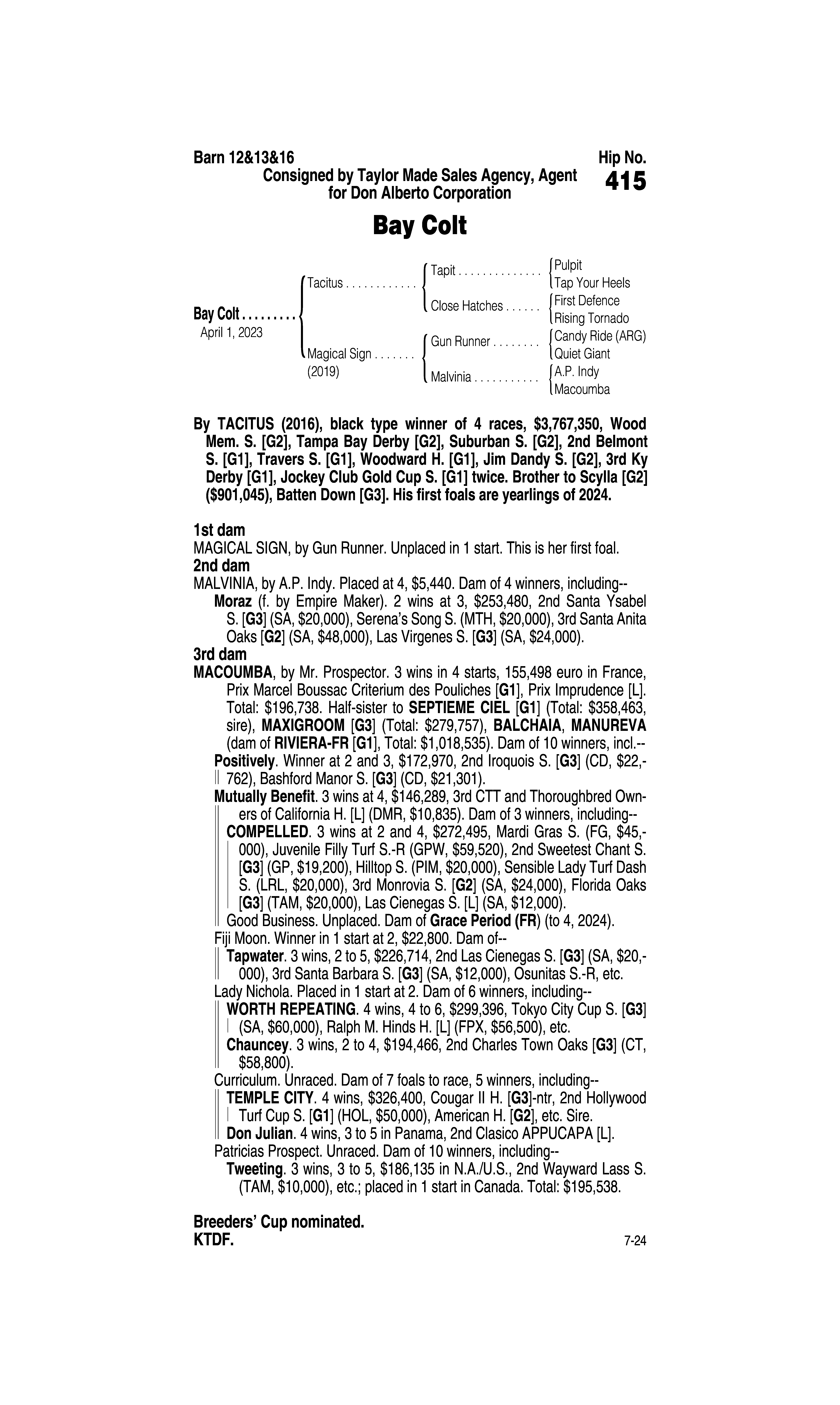 Sire: Tom's d'Etat