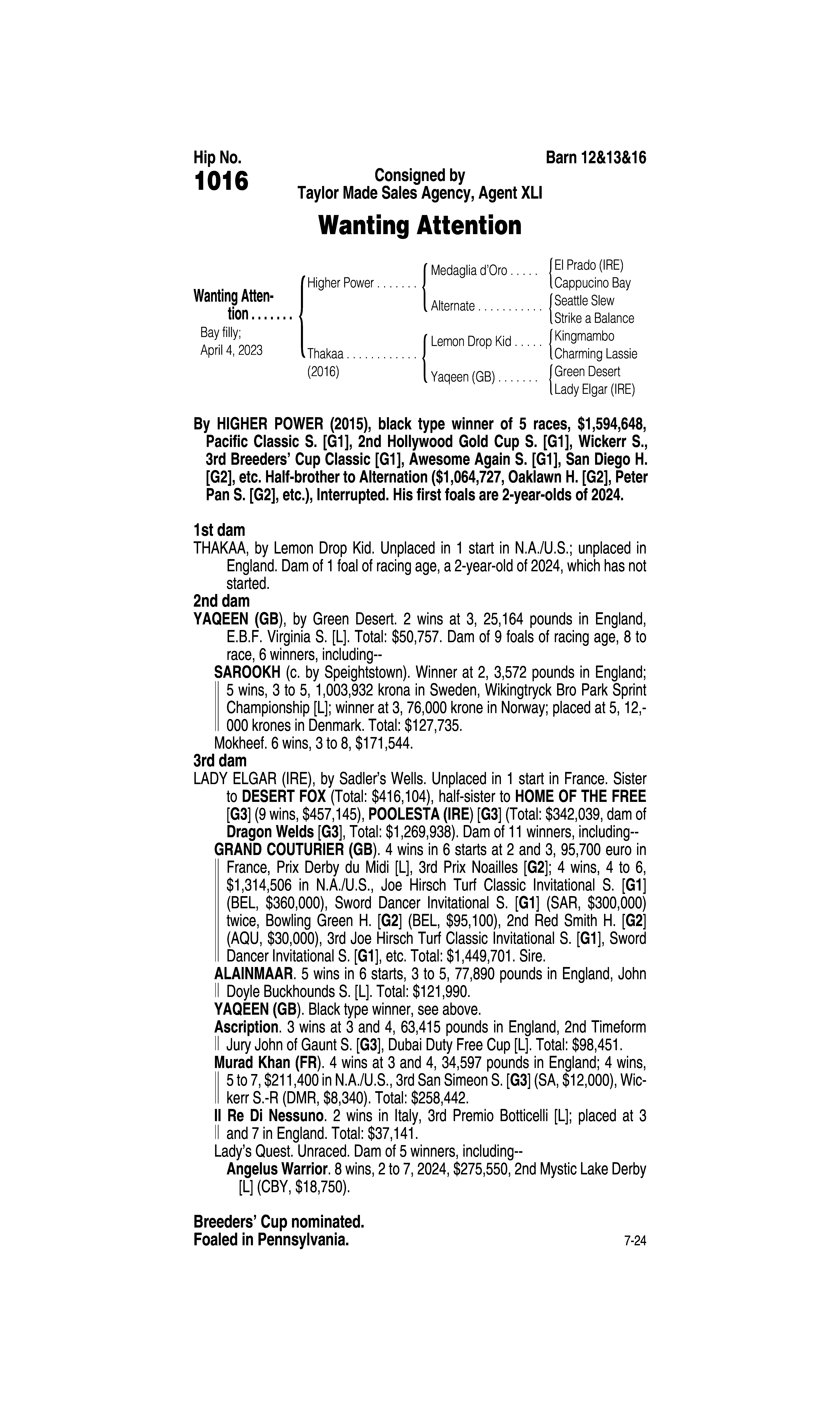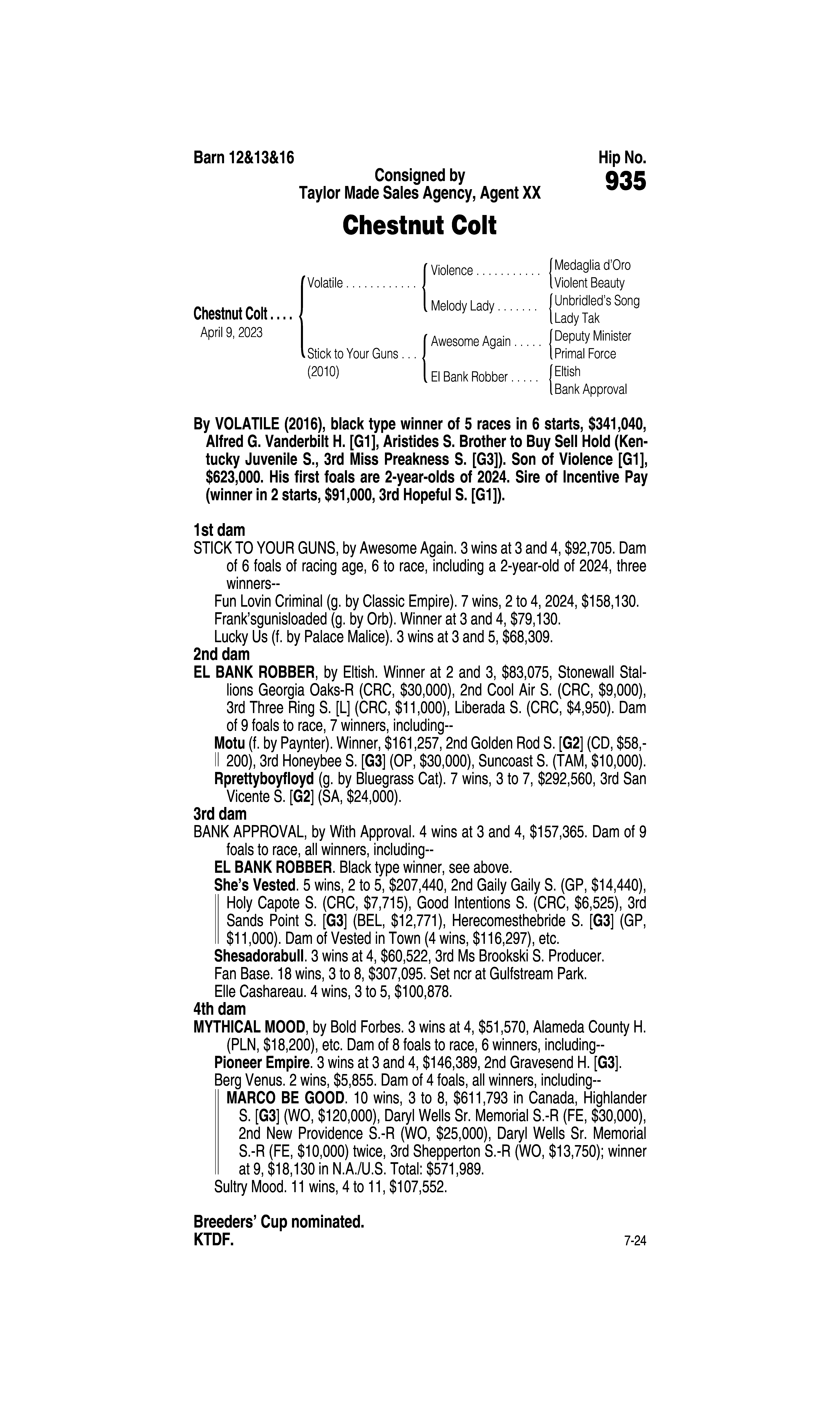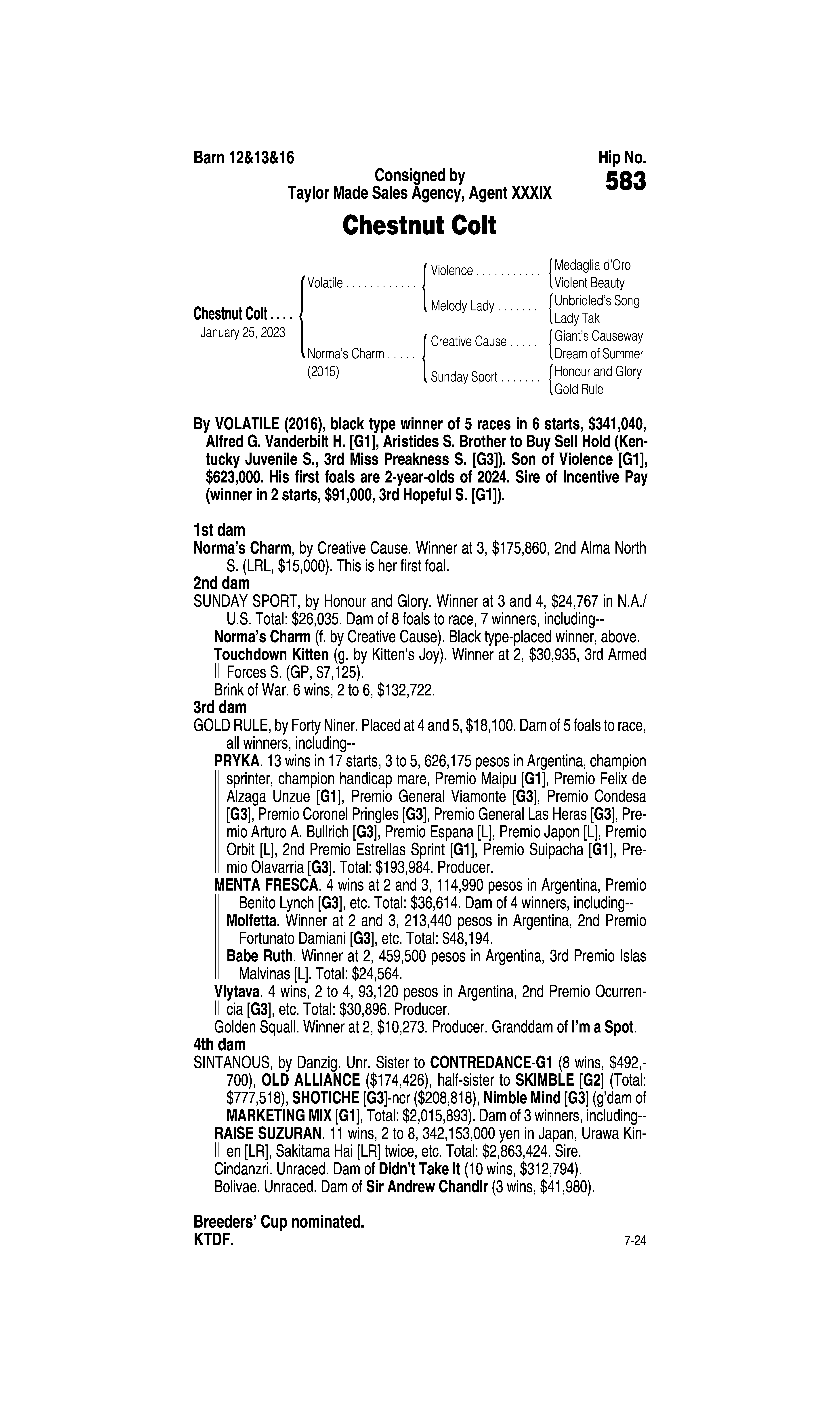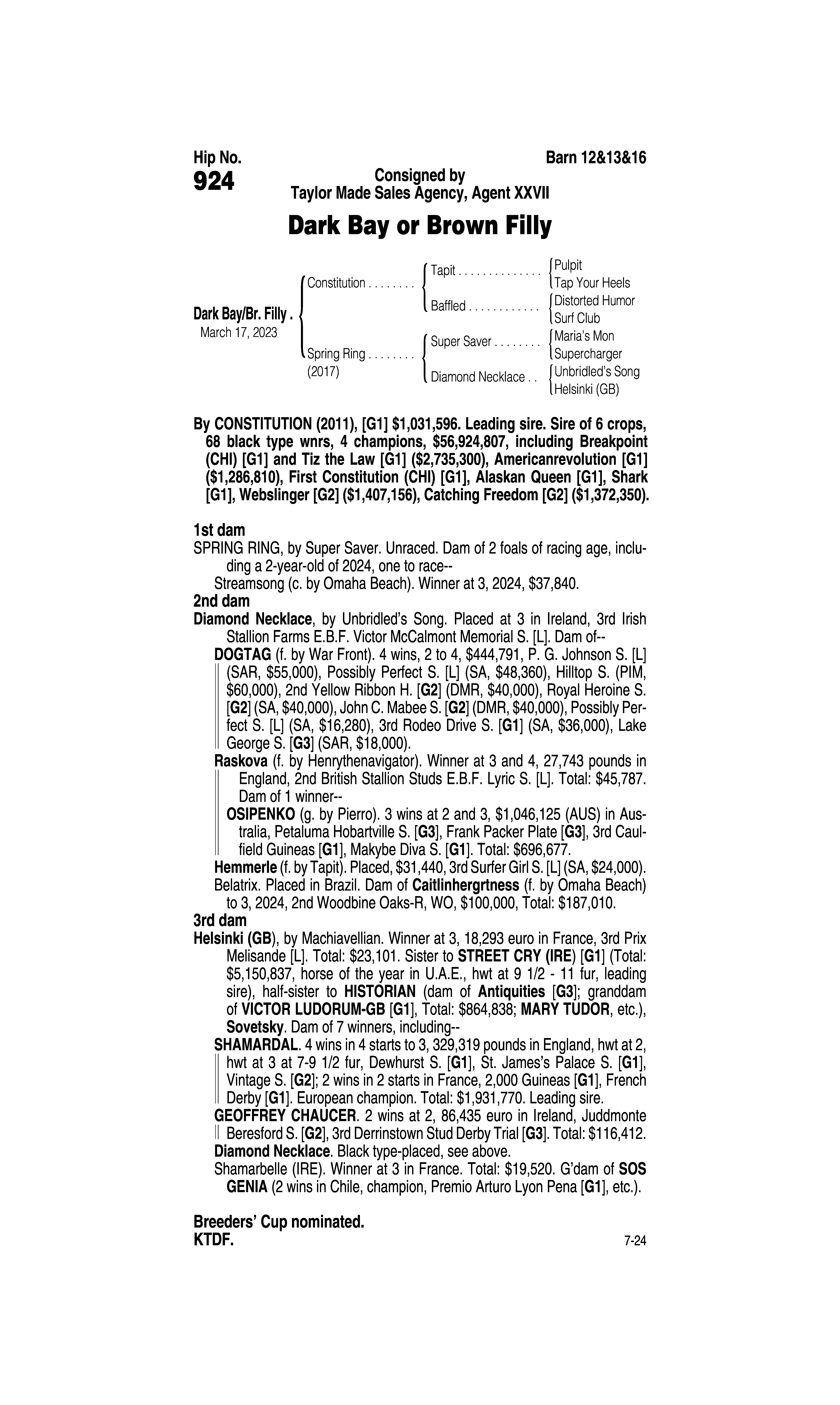 Sire: Tom's d'Etat