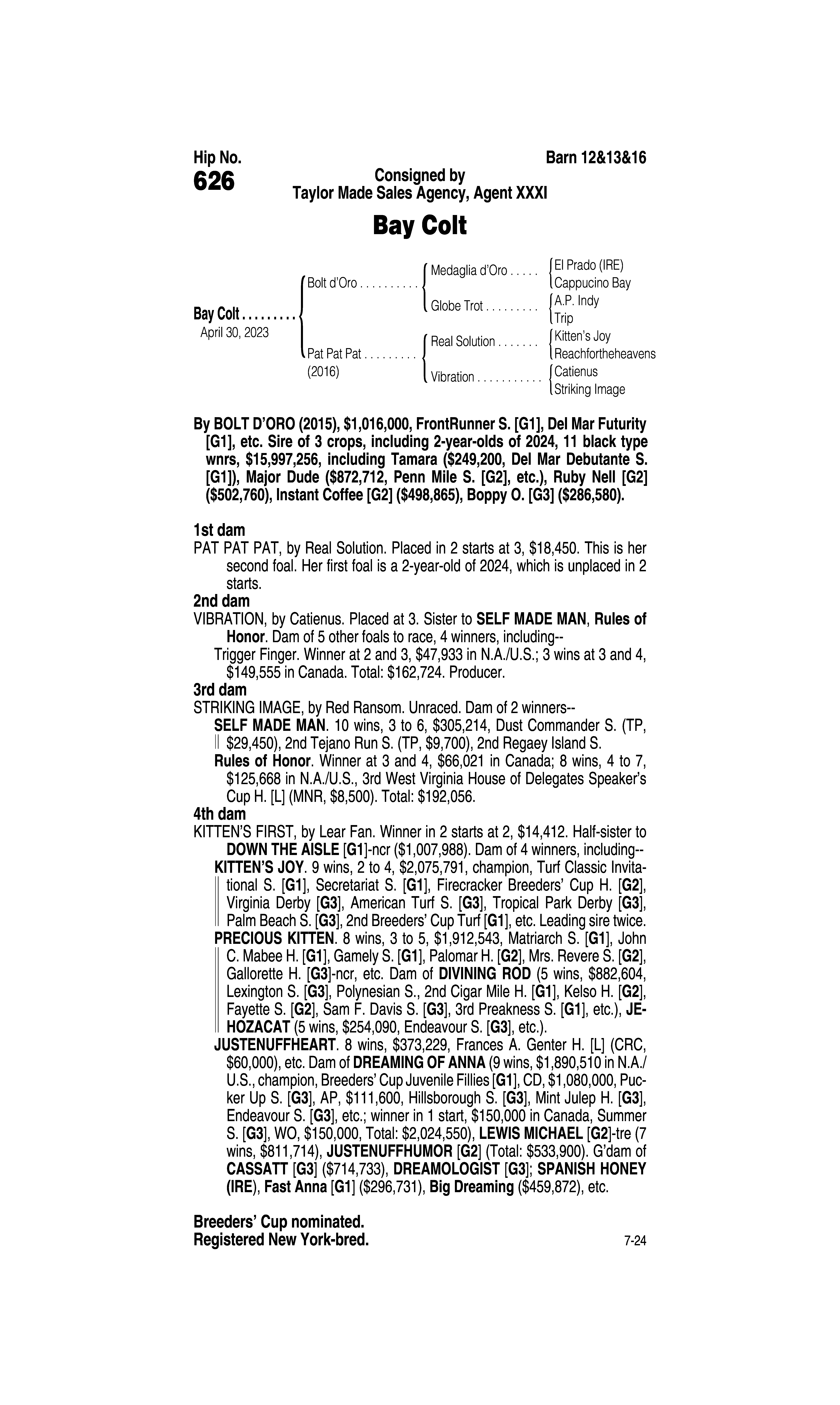 Sire: Bolt D’Oro