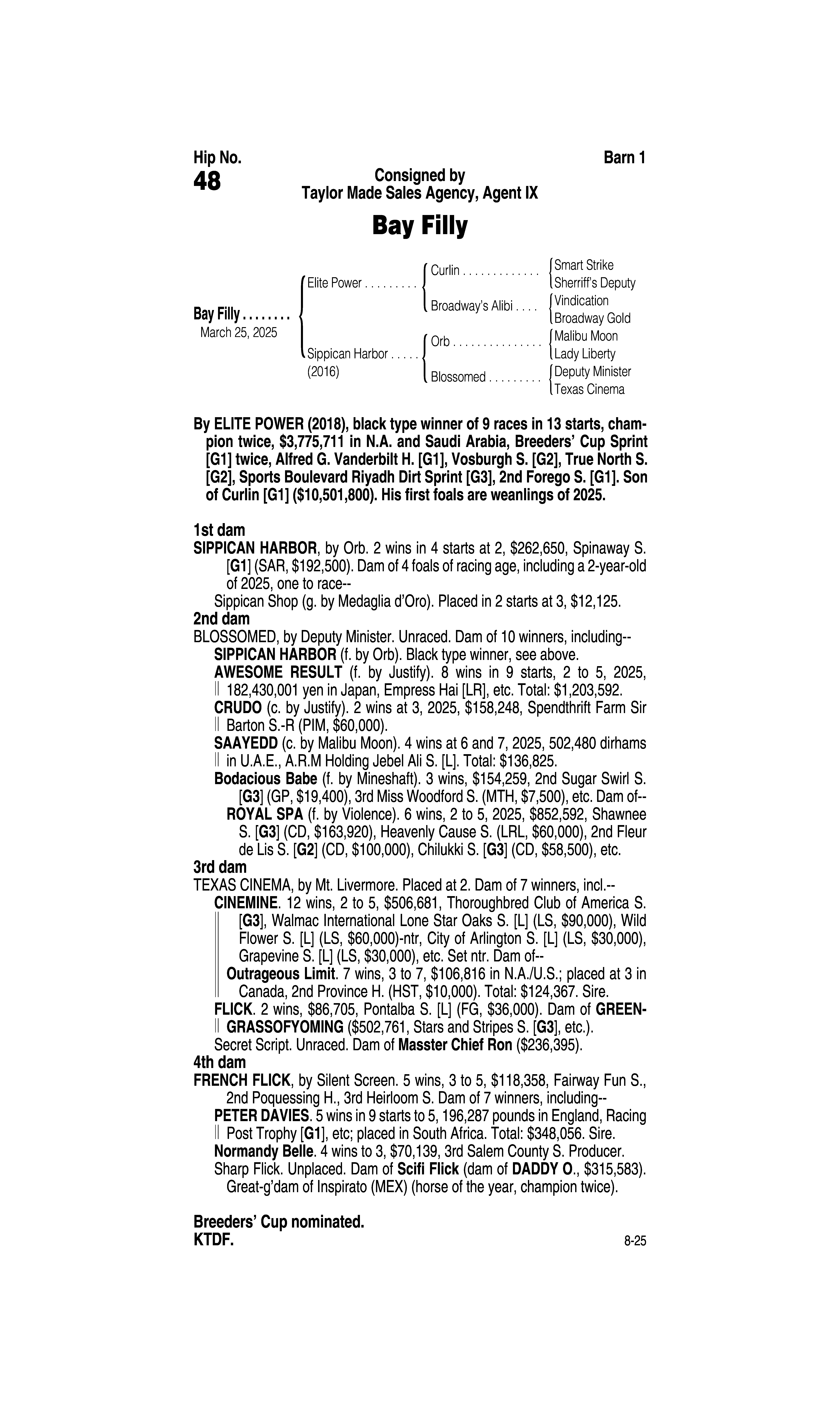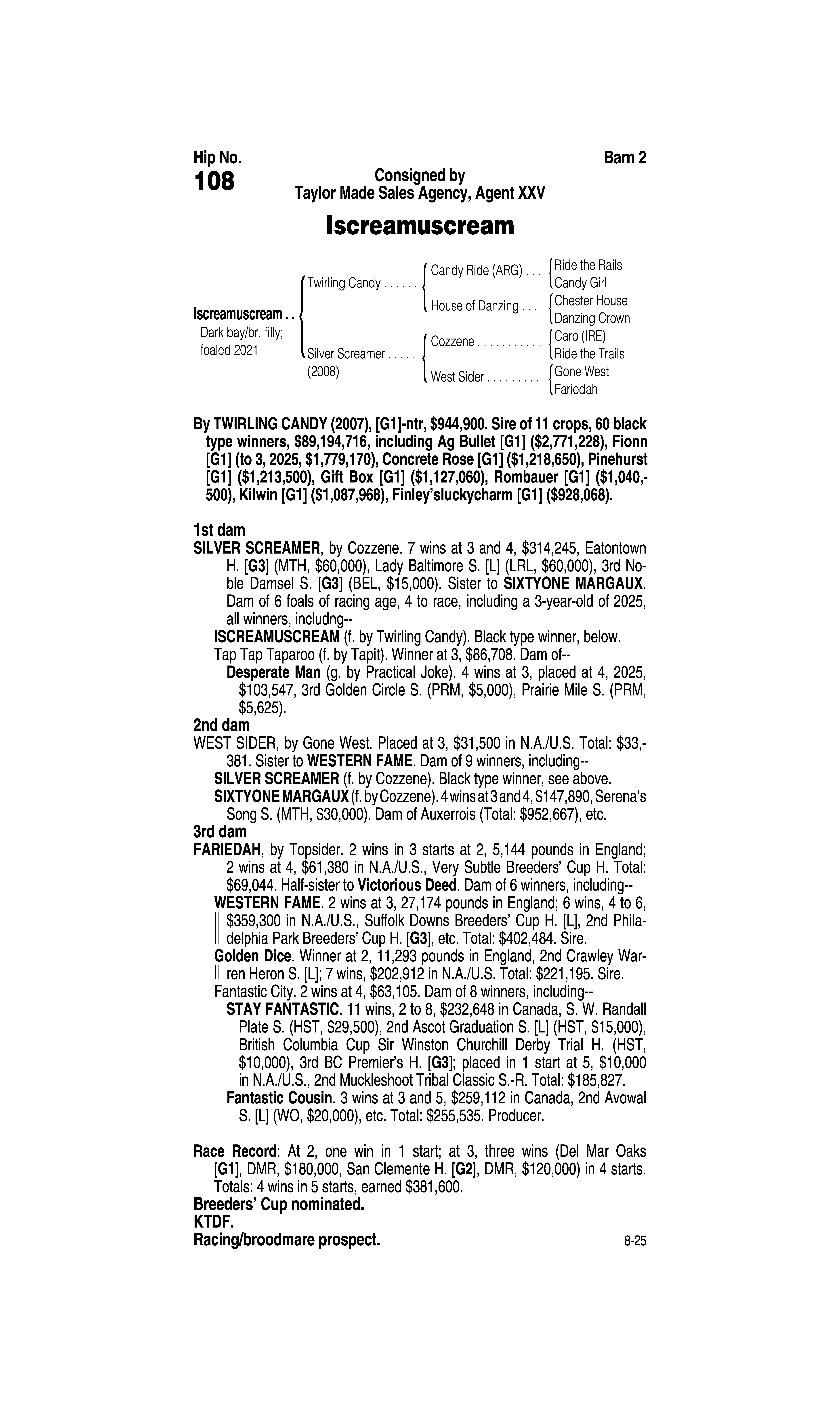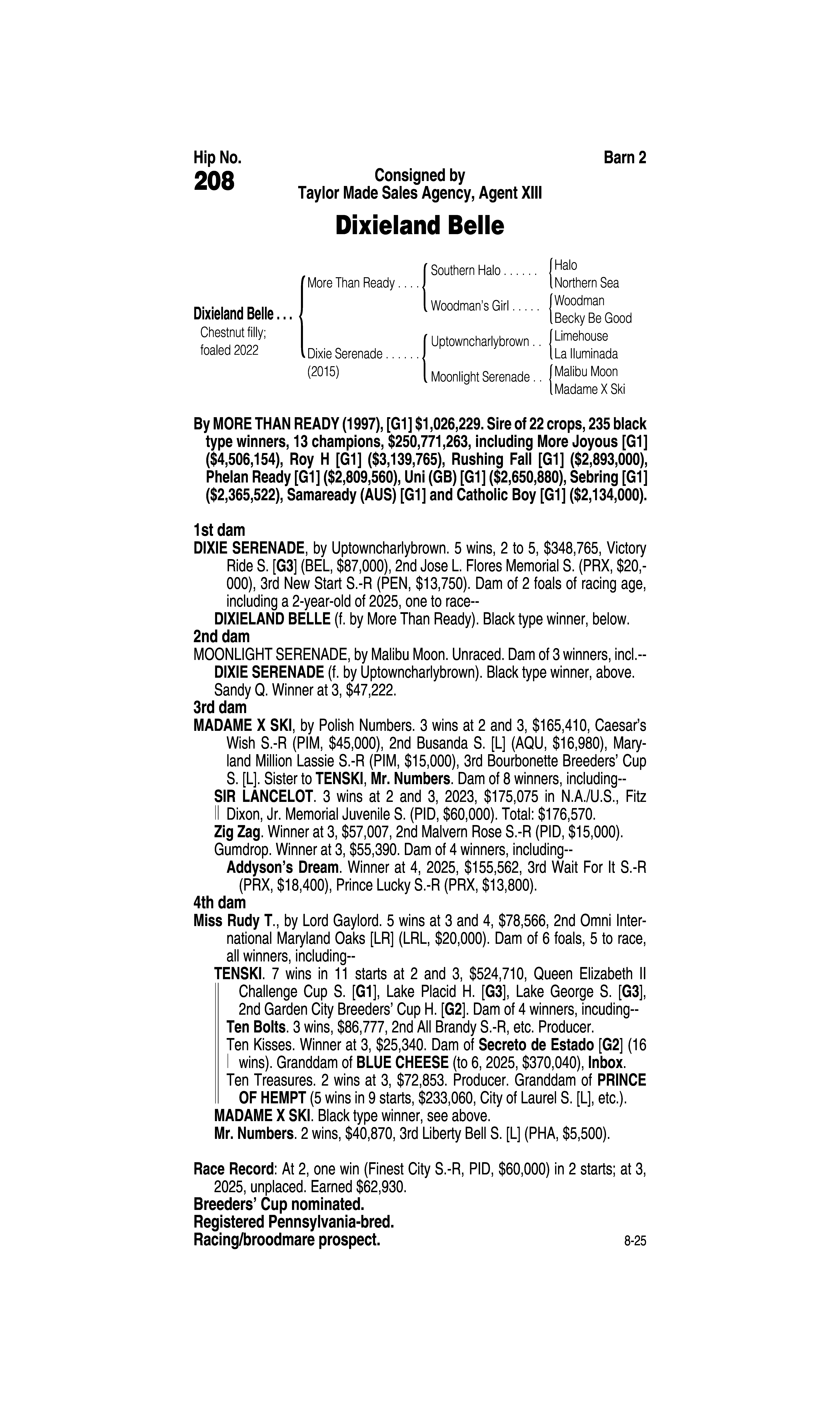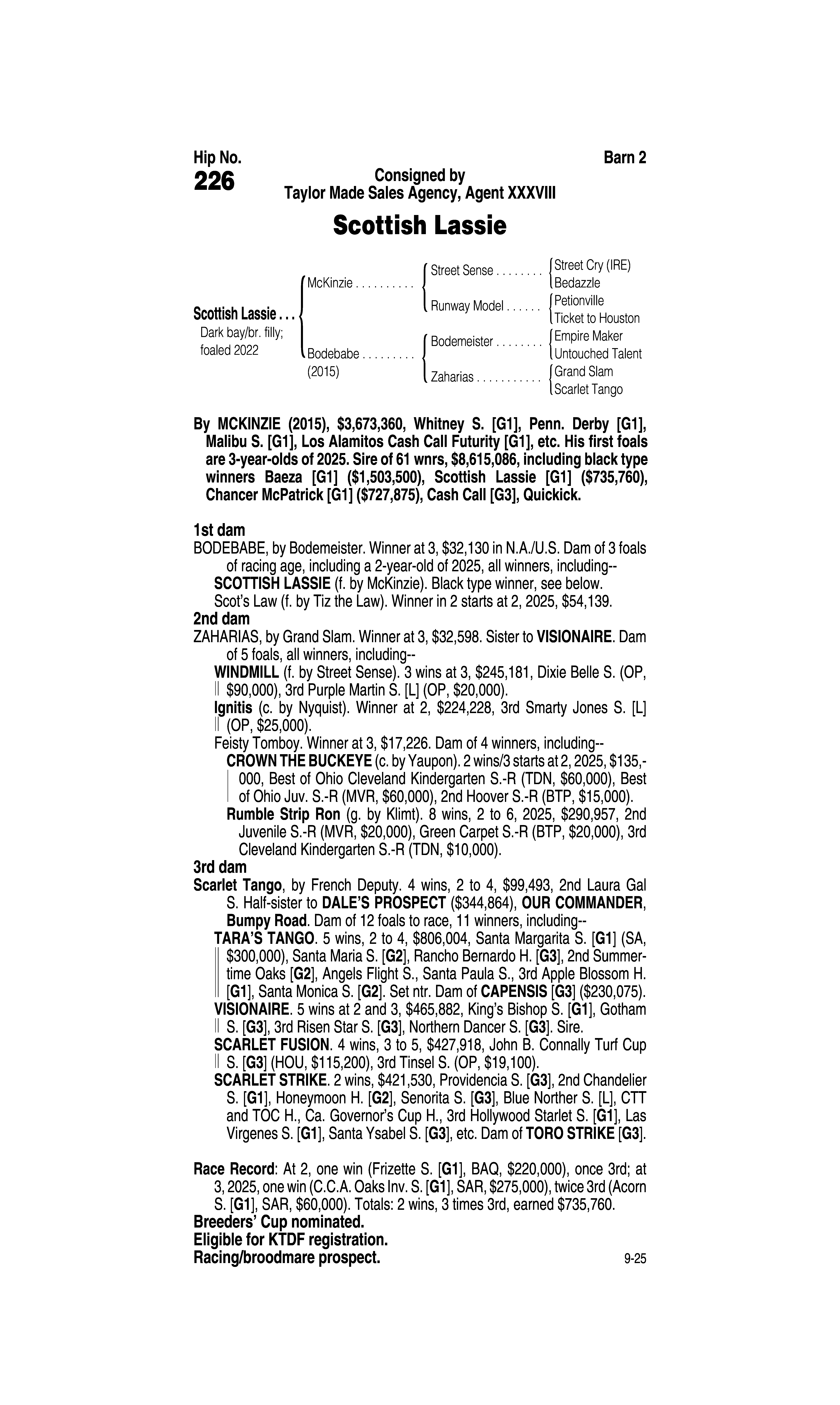Type: Racing or Broodmare Prospect