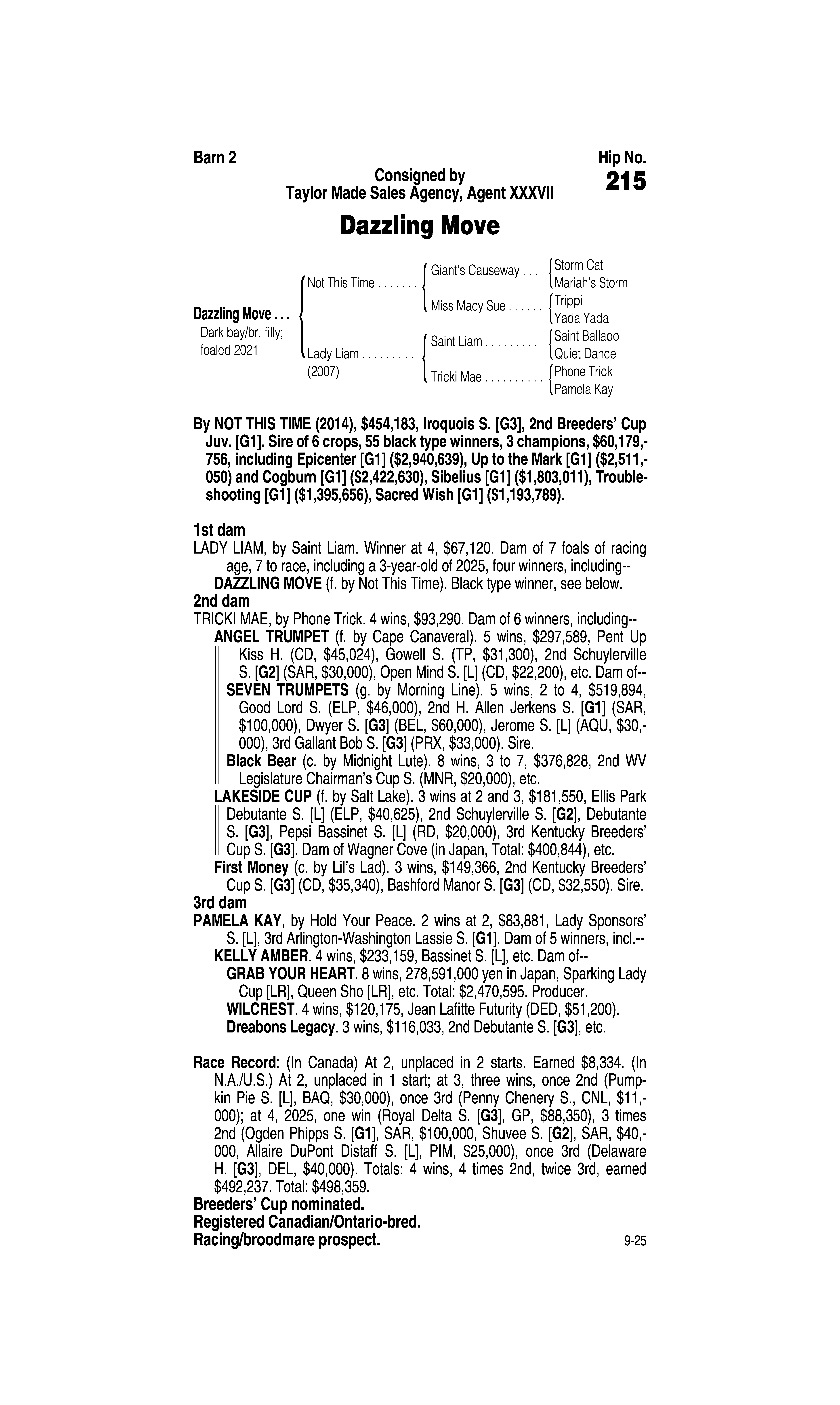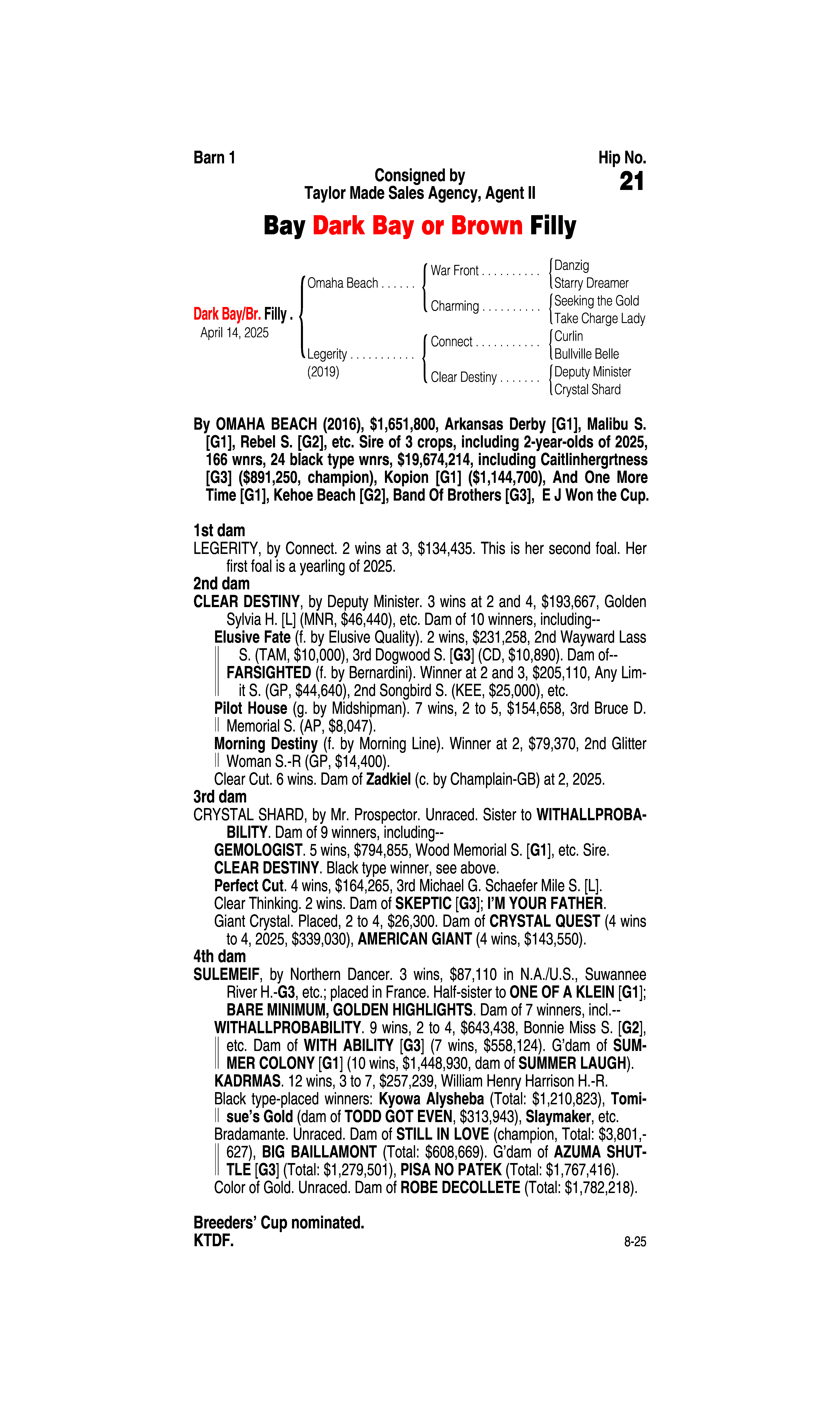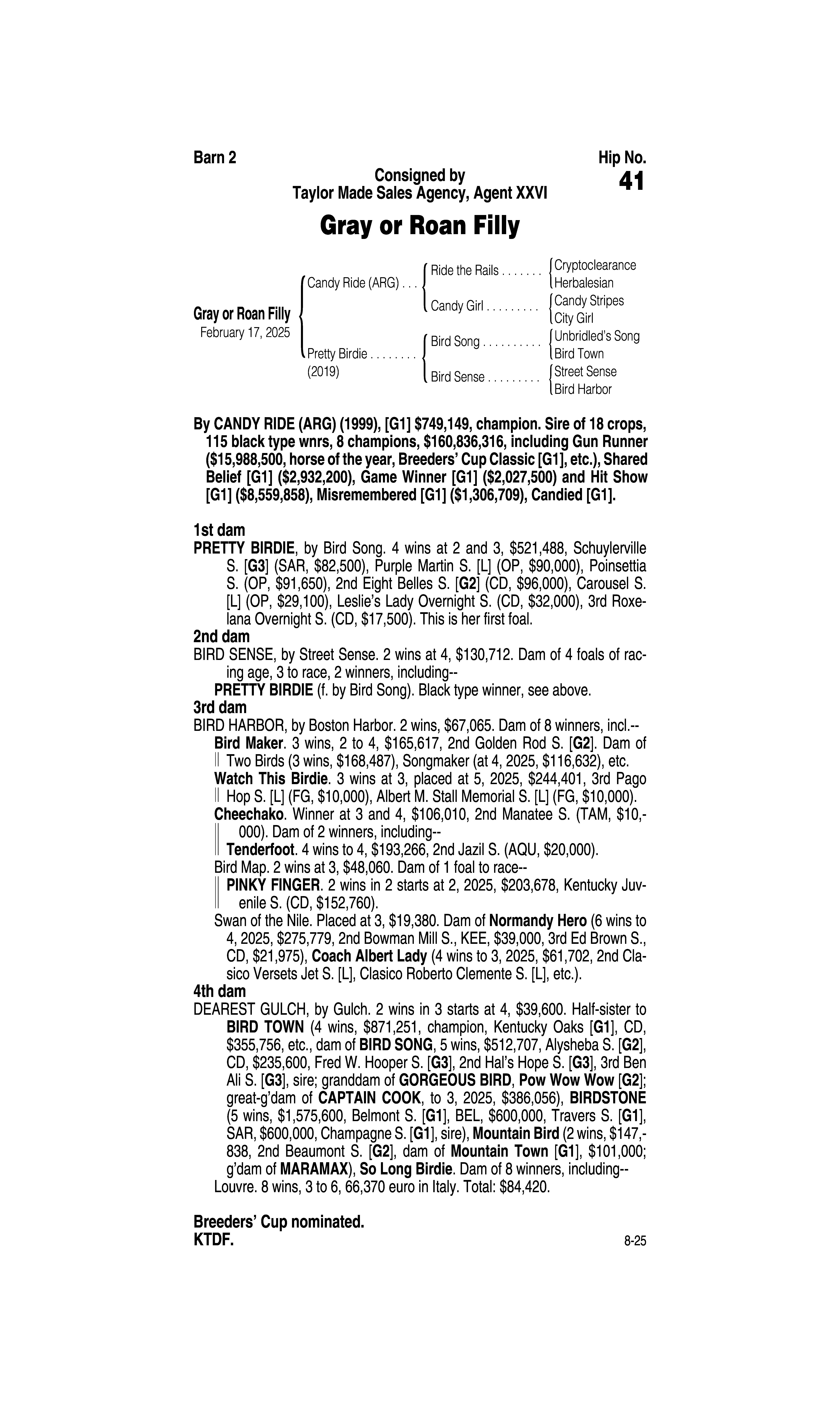 Type: Racing or Broodmare Prospect