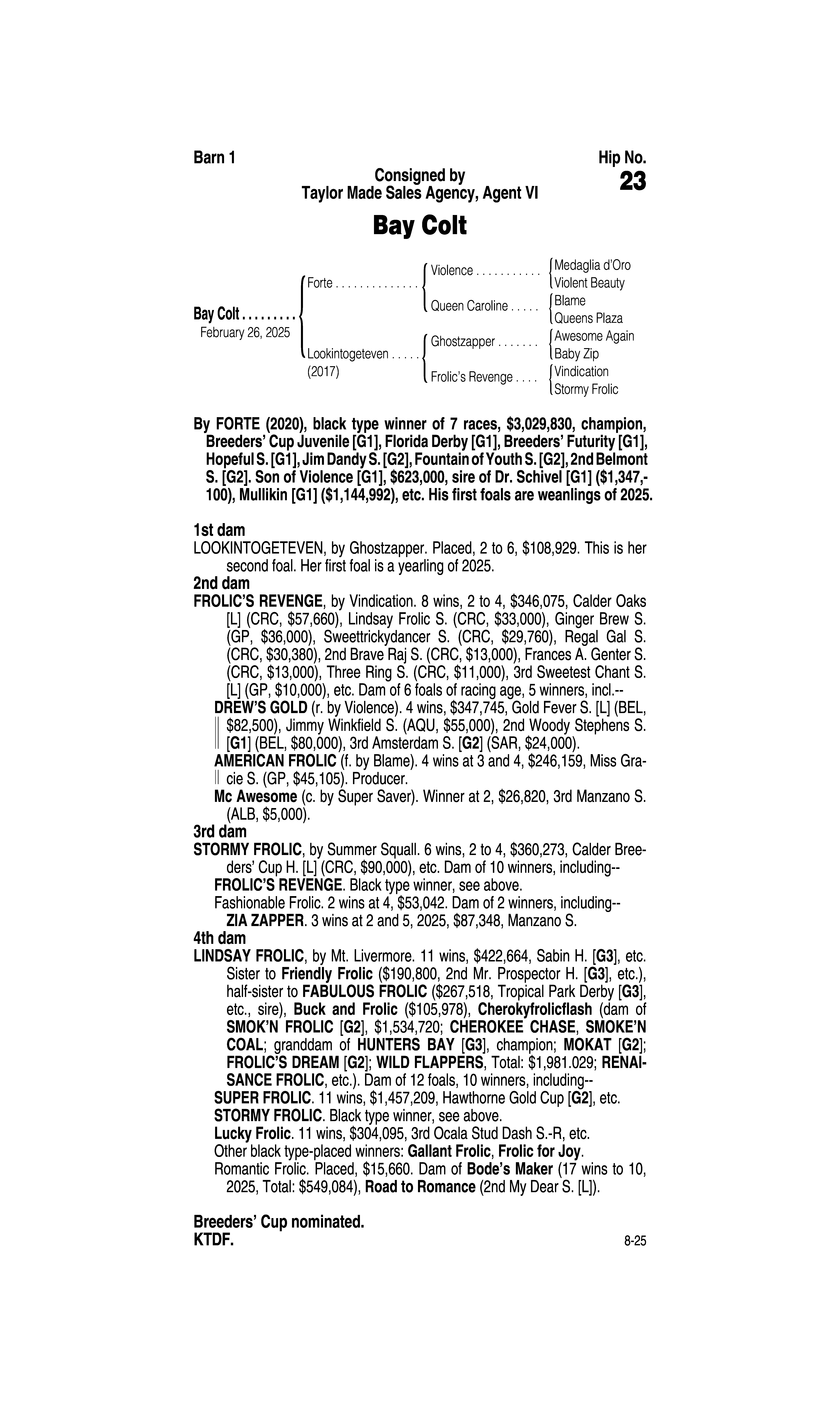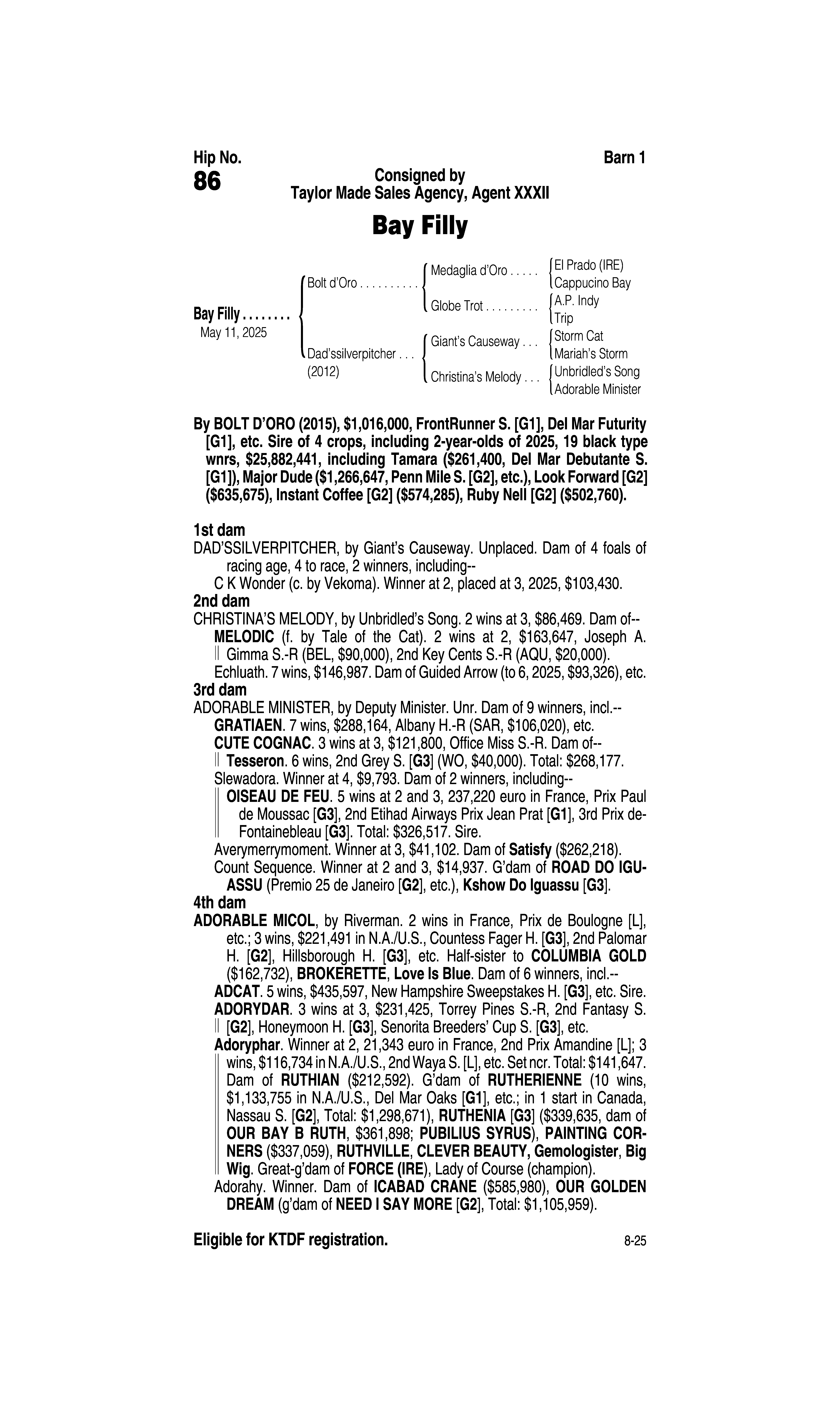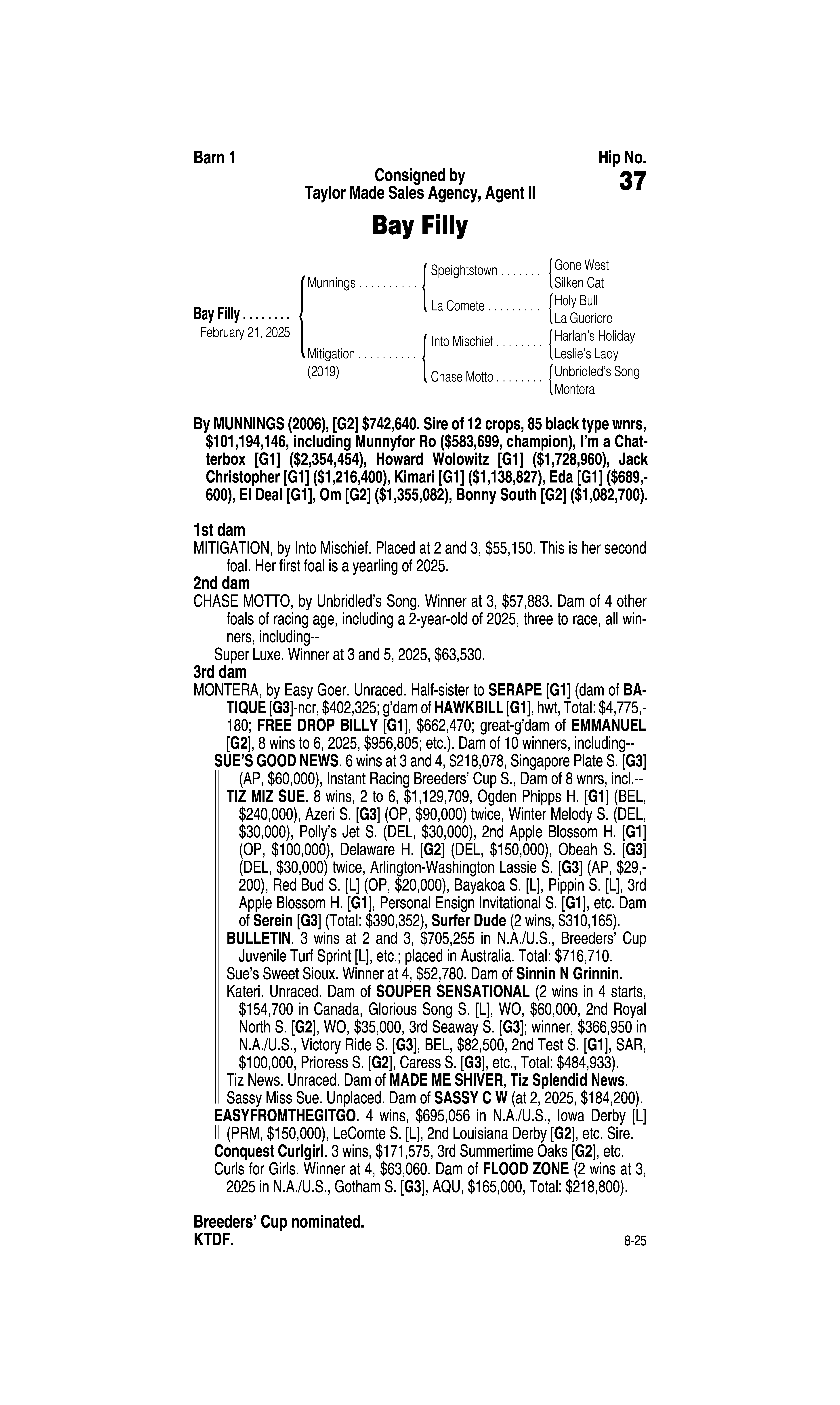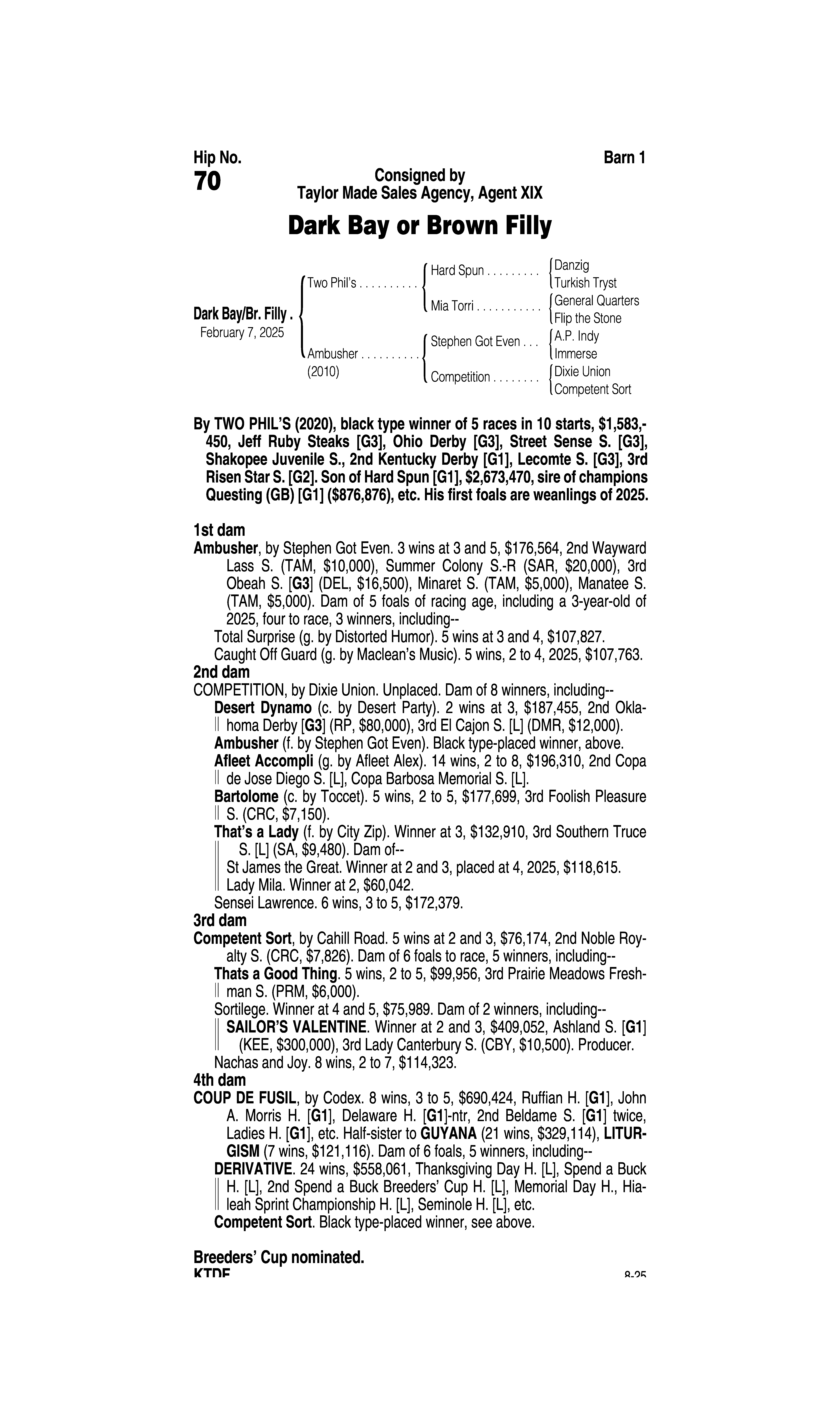 Type: Racing or Broodmare Prospect