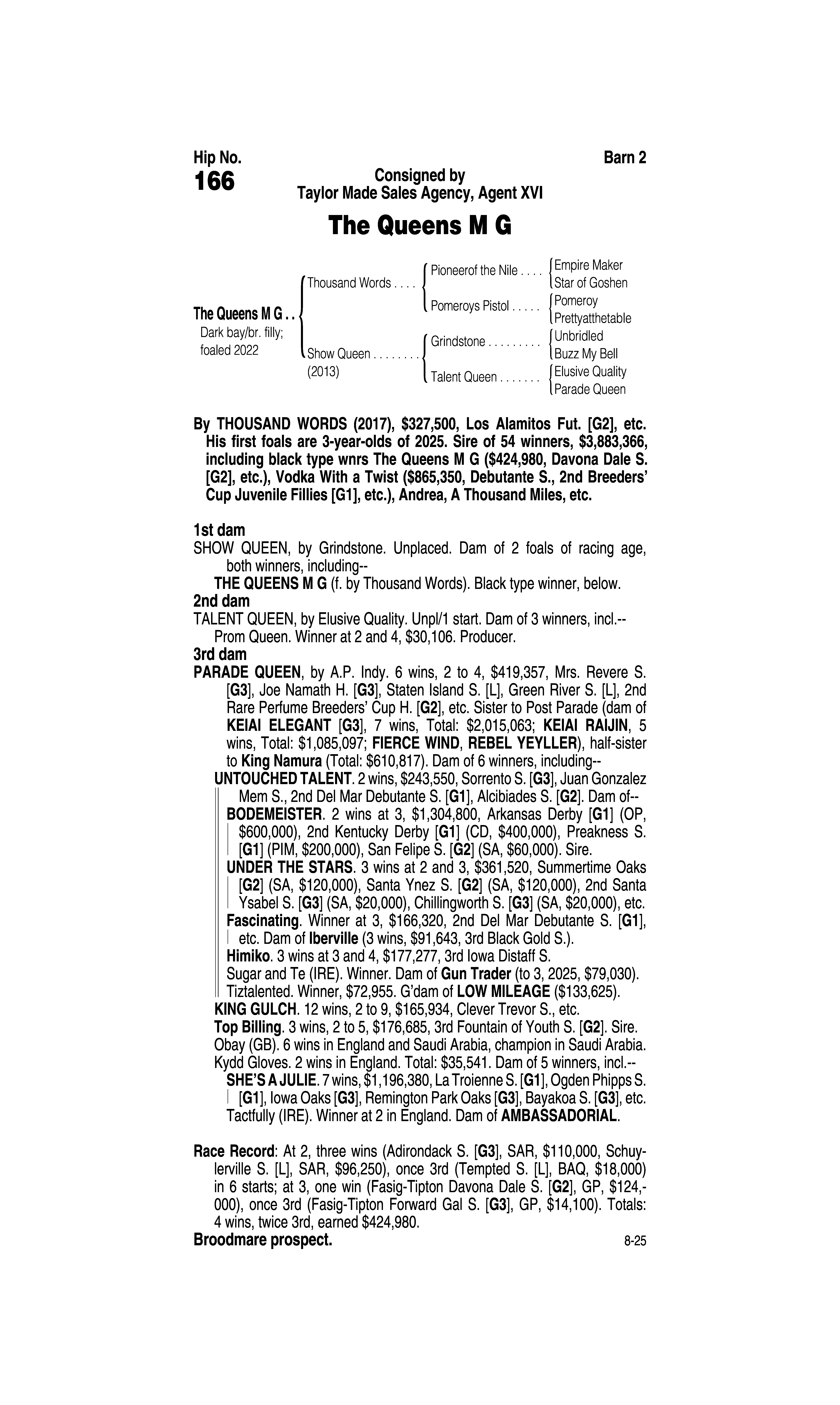 Type: Broodmare Prospect Only